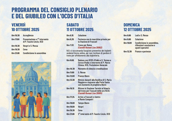 Programma del Consiglio Plenario OCDS Provinciale 2025 e della Giornata Giubilare con l’OCDS d’Italia.