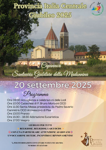 Il 20 settembre 2025 nella chiesa giubilare del Santuario della Madonnina di Capannori (LU), si è svolto il giubileo carmelitano della Provincia "S. Giuseppe" dell'Italia Centrale. La giornata è iniziata con l'accoglienza del Priore P. Stefano Aranha o.c.d. a cui è seguita la recita comunitaria delle Lodi.