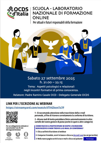 P. Ramiro Casale, OCD Delegato Generale OCDS sabato 27 settembre ci parlerà degli aspetti psicologici e relazionali negli incontri formativi di prima conoscenza.